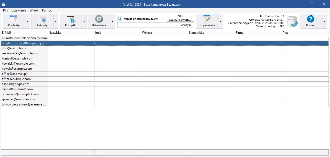 Personalizacja bazy kontaktów w programie AnoMail działa znacznie lepiej niż kreator newsletterów. Ale do ideału wciąż sporo brakuje.